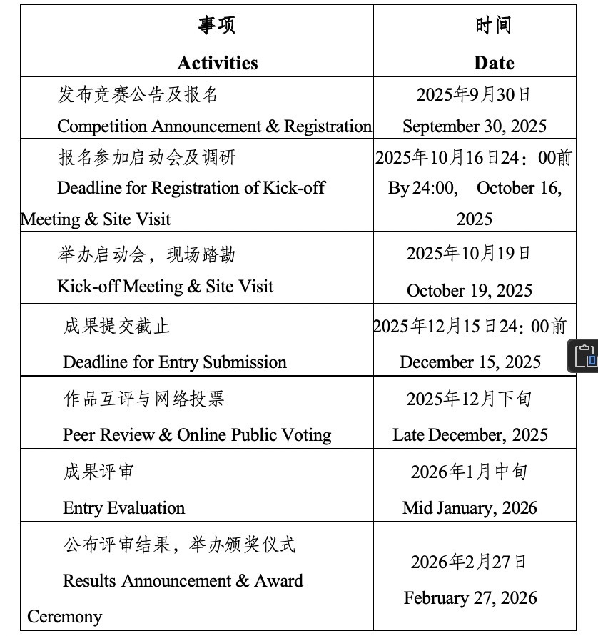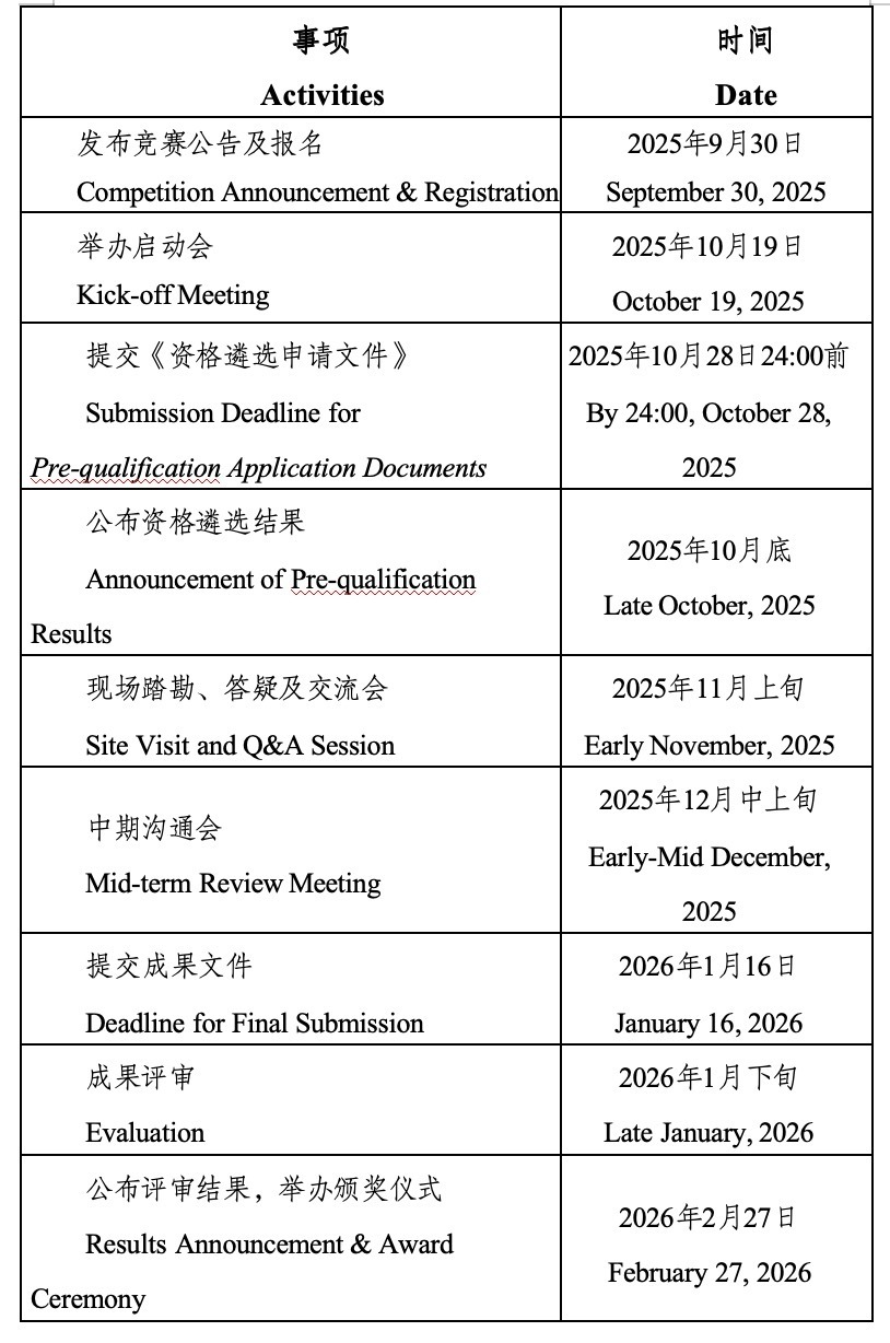 启动会及现场踏勘报名时间:即日起至2025年10月16日24:00截止。以上两项活动均无费用收取,请持续关注赛事讯息。