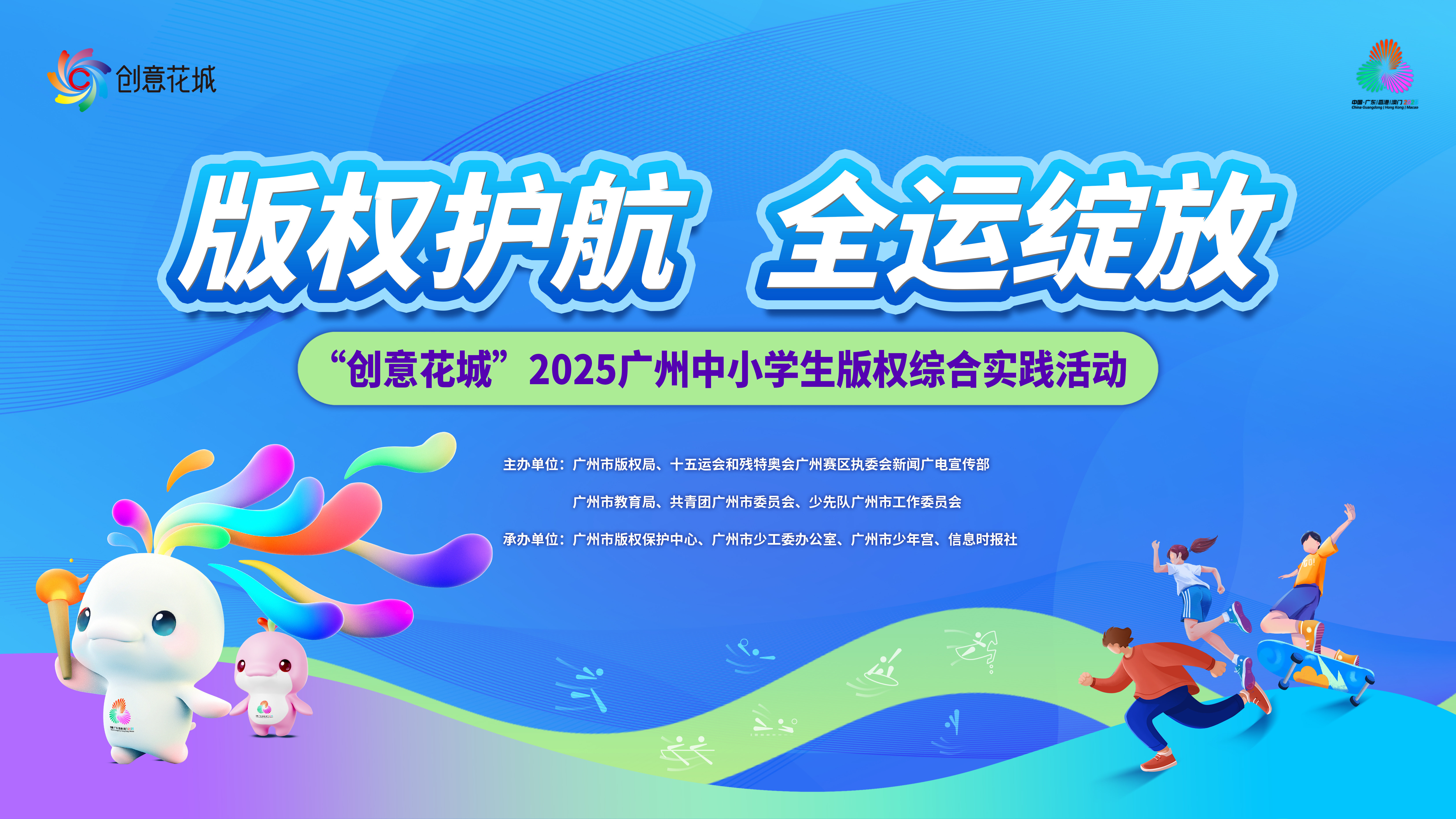 为着力培养和提高青少年认识版权、了解版权、保护版权的意识,营造共同迎接“十五运会”的浓厚氛围,擦亮“创意花城”广州版权宣传品牌,由广州市版权局、十五运会和残特奥会广州赛区执委会新闻广电宣传部、广州市教育局、共青团广州市委员会、少先队广州市工作委员会主办的“创意花城”2025广州中小学生版权综合实践活动即将拉开帷幕。